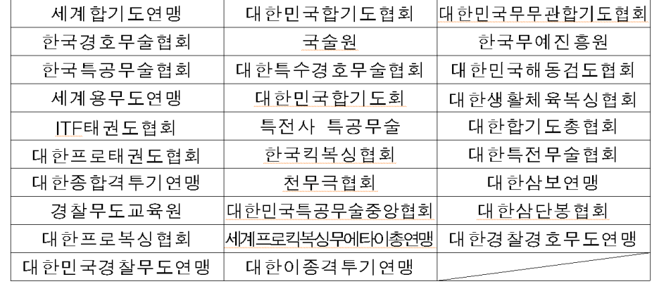 그리고 끝으로 무예분야에서 인정되는 단체가 있습니다.