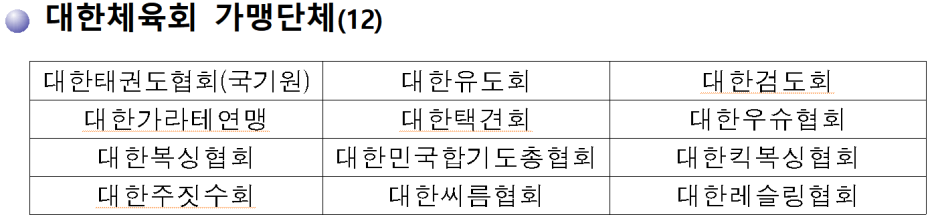 제일먼저 소개할 곳은 대한체육회 가맹단체 입니다.