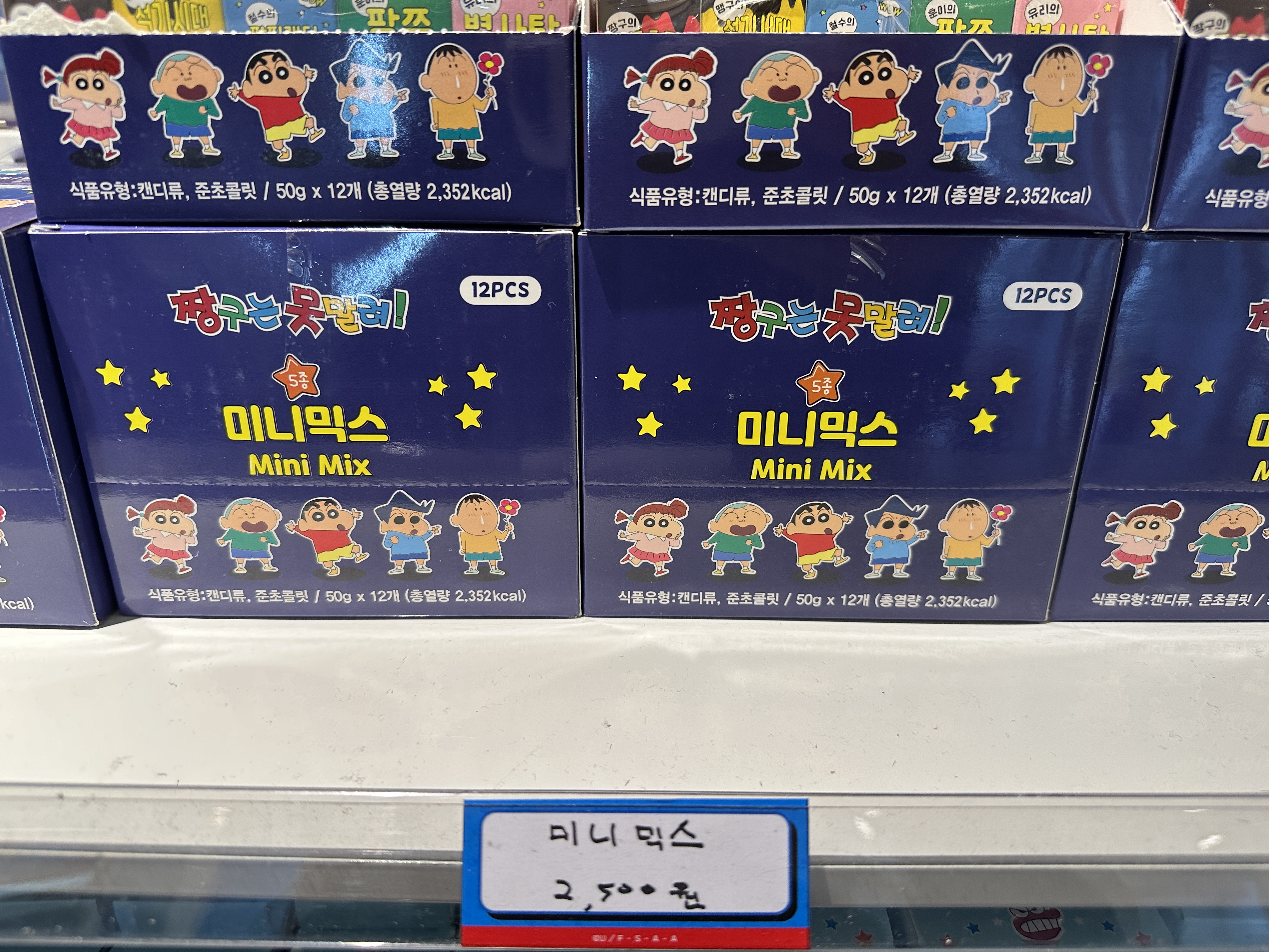 짱구 인형들부터 저금통, 연필통 등 온통 짱구들 뿐이었습니다. 계산하는 곳에 가면 먹을 것도 팔고 있었습니다.