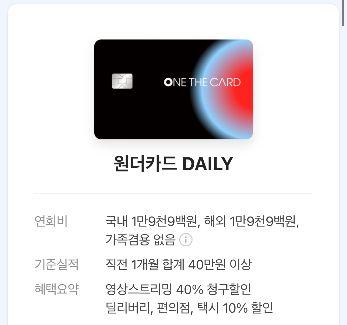 다른 기타 서비스 및 할인, 적립 혜택은 해당카드를 검색해서 확인하시기 바랍니다.